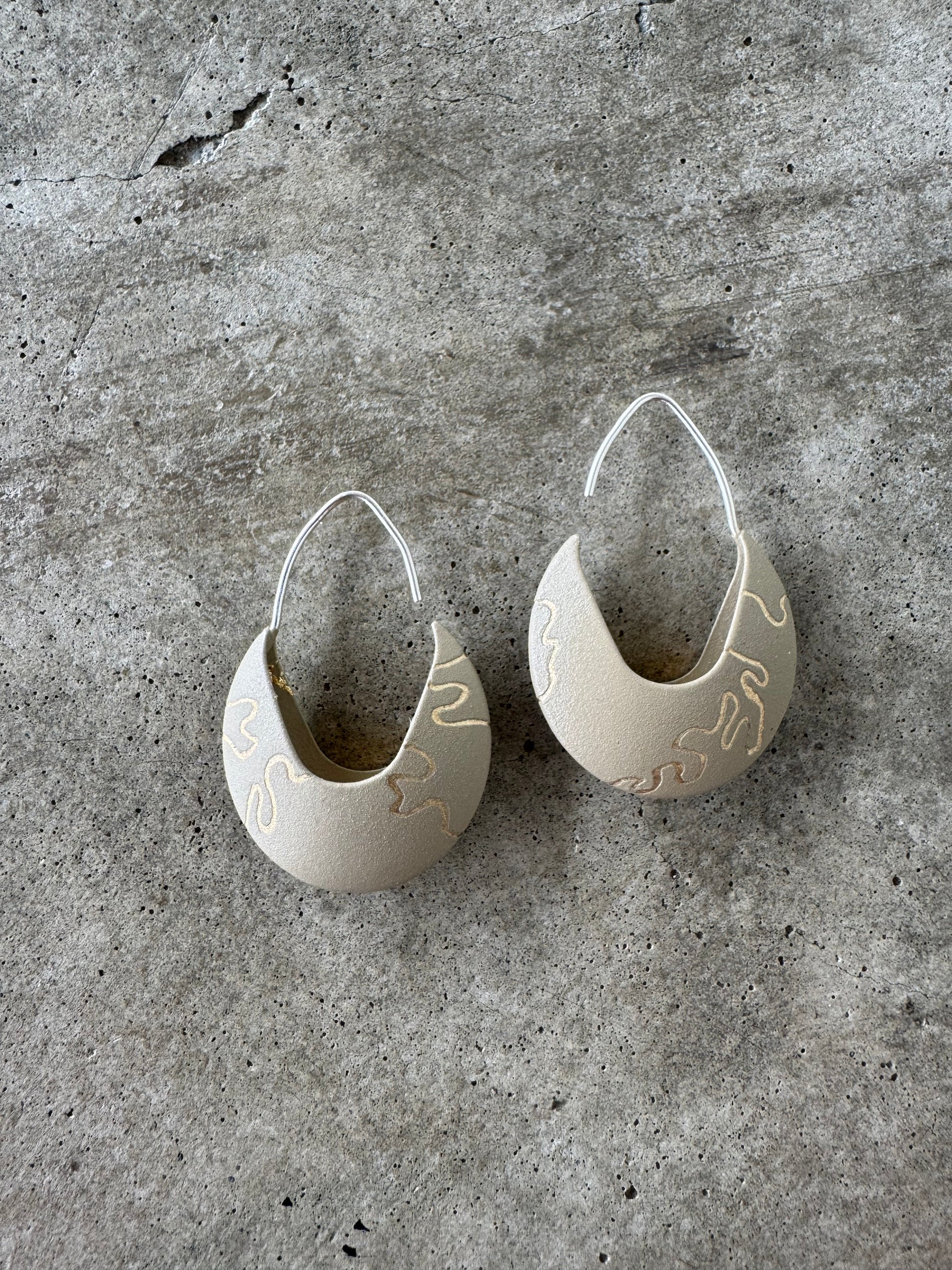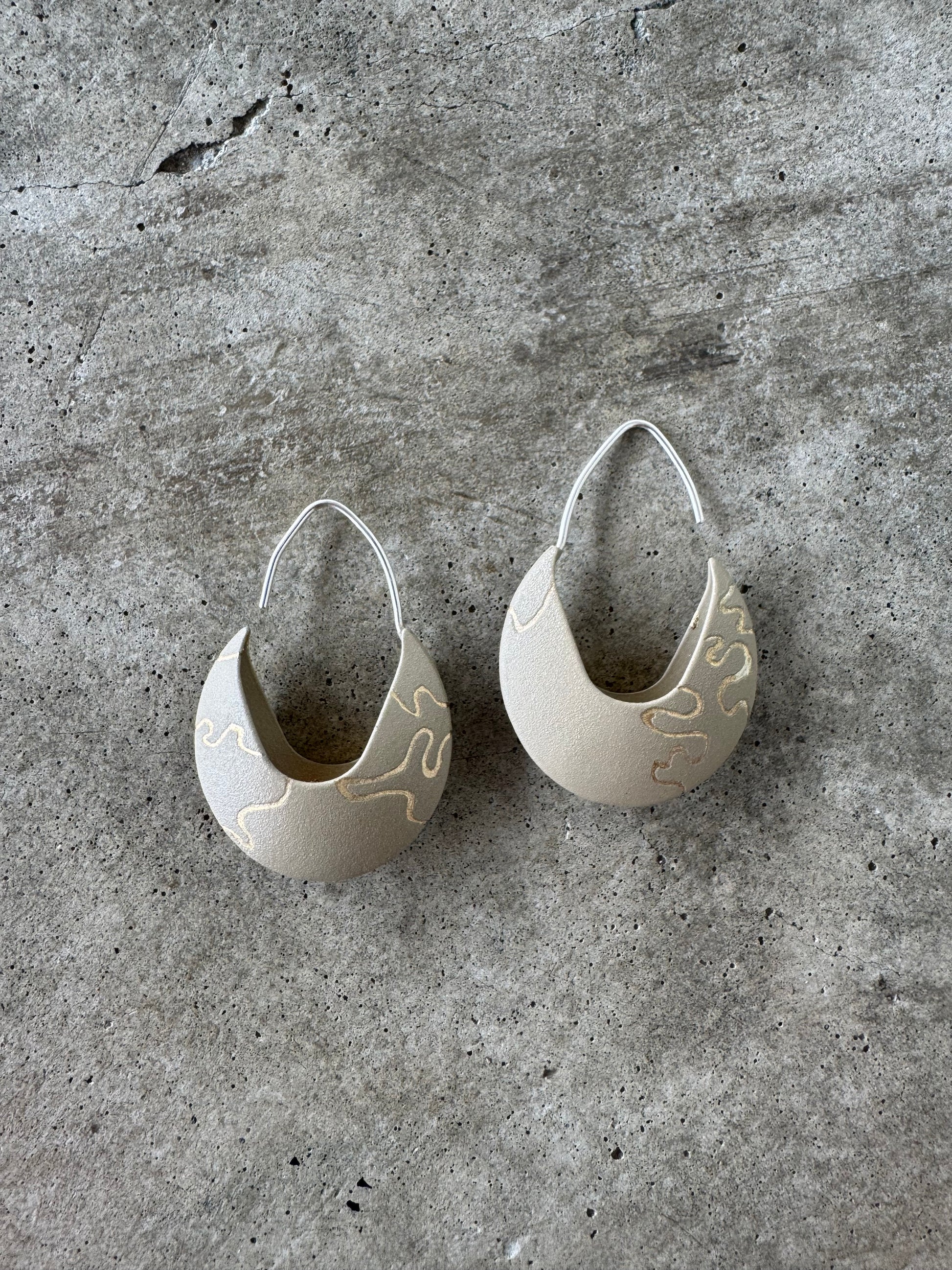 Powder-coated brass with an exposed brass detail and sterling silver ear wire.